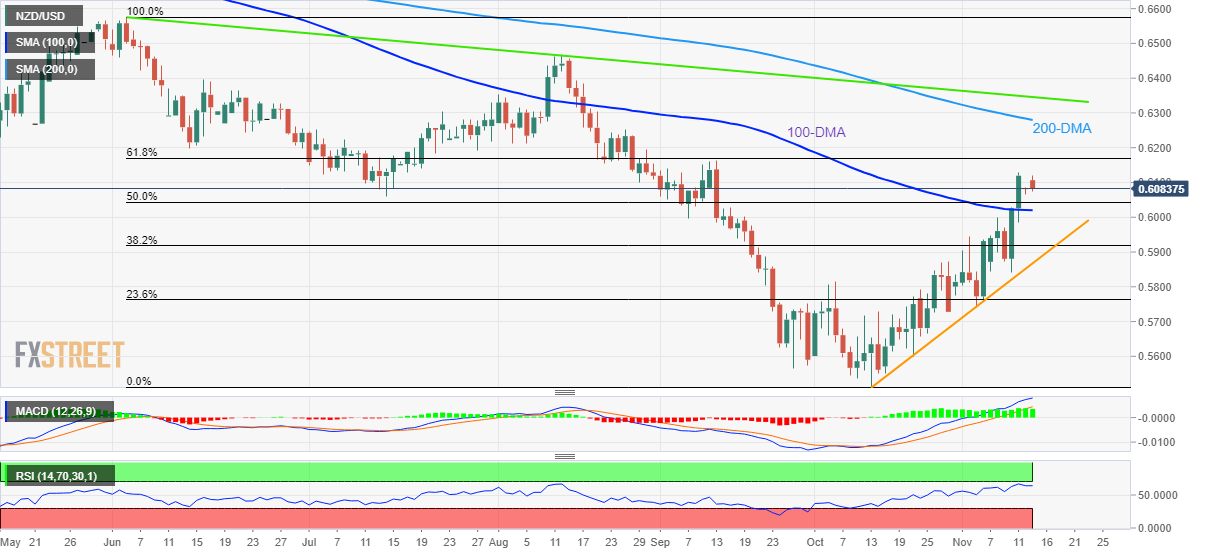 这样,由于相对强度指标(RSI)接近超𧹒,纽元兑美元下跌,跌破6月至10月下行趋势的61.8%斐波位。