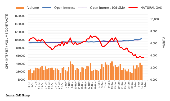 芝加哥商业交易所集团天然气期货市场的最新数据显示,周二天然气未平仓合约再度增长,目前增长约1.66万份。另一方面,成交量萎缩近6万份合约,延续震盪表现。