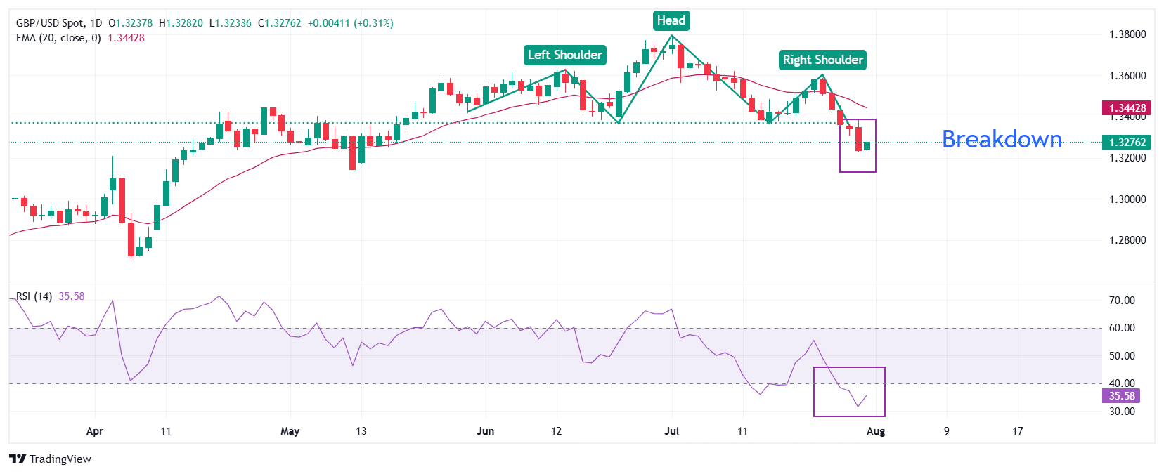 周四,英镑在1.3230附近找到支撑,接近两个月来的低点。然而,GBP/USD的前景依然看跌,因為其已跌破看跌头肩(H&S)图形的颈缐,颈缐位于1.3370附近。