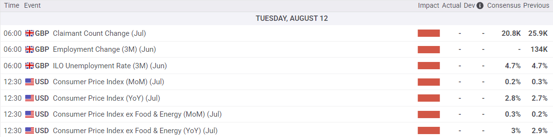 7月份的美国CPI通胀数据将在周二公布,预计将比平时吸引更多投资者的关注。预计整体和核心CPI通胀在年化基础上将有所上升,投资者希望通胀的上升幅度足够小,以免影响美联储当前的降息轨迹。预计整体CPI通胀将从2.7%上升至2.8%,而核心CPI预计将从前值2.9%上升至3.0%。