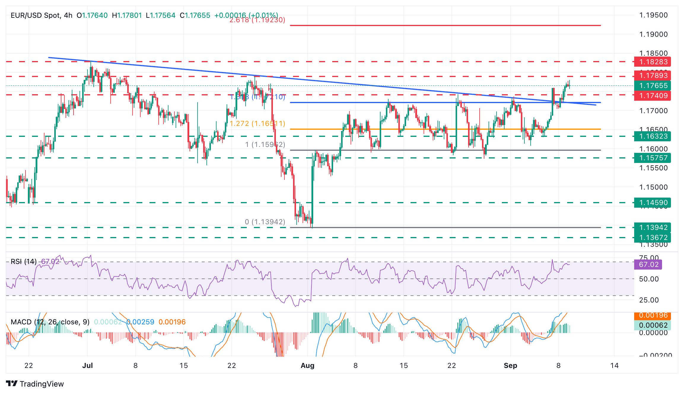 在周二的两天反弹后,EUR/USD在1.1760小幅上涨。美元仍处于防守状态,投资者预期美国就业数据将大幅下调,侭管法国的政治危机仍对欧元(EUR)多头施加压力。