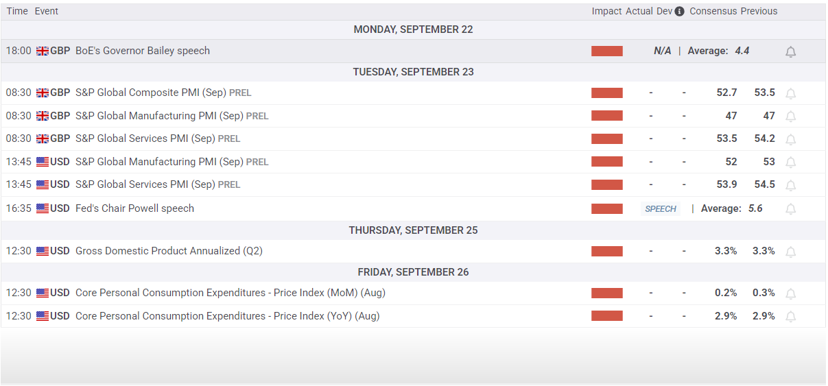 英国9月份的製造业PMI预计将保持在47.0,但服务业PMI成分预计将从54.2回落至53.5。在美国的数据日程中,9月份的PMI结果预计全面回落,製造业成分预计将大幅下降至52.0,低于53.0。美国服务业PMI调查预计将显示商业信心从54.5收缩至53.9。