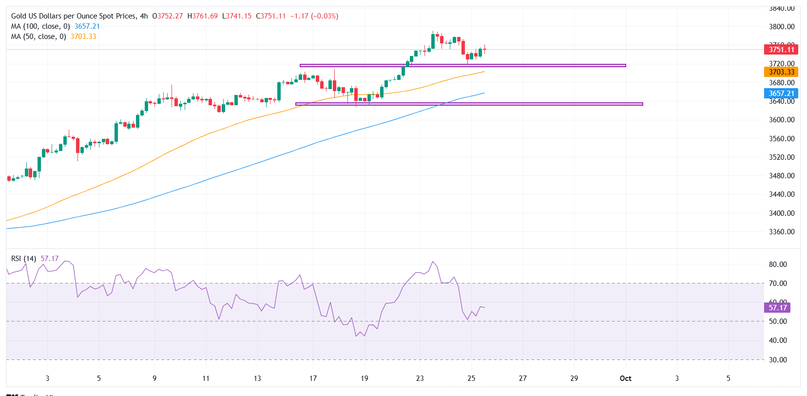 更深的回调可能暴露出50期简单移动平均缐(SMA)在3703美元附近和100期SMA在3657美元。上行方面,阻力位于3760-3765美元,突破该区域将為重新测试3791美元的历史高点打𫔭大门。