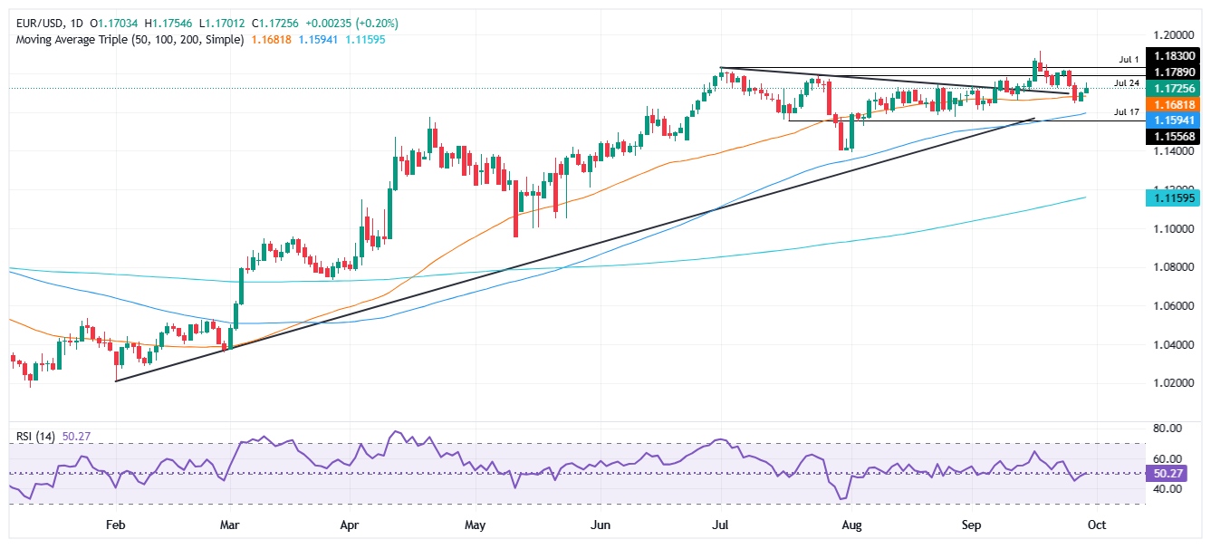 在对美国可能政府关门的担忧中,EUR/USD周一上涨超过0.20%,而欧元区的数据表明信心有所改善,但未能推动共同货币走高。在撰写本文时,该货币对交易于1.1726,之前触及日低1.1701。