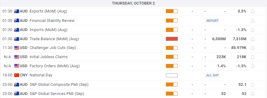 预计澳大利亚的贸易平衡在8月份将下降至65亿。7月份进口下降1.3%,而同期出口上升3.3%,使得澳大利亚7月份的贸易平衡环比达到73.1亿。澳大利亚贸易平衡数据将在GMT01:30公布。澳大利亚标准普尔采购经理人指数(PMI)数据也将在周四晚间GMT23:00公布。预计澳大利亚服务业PMI在9月份将保持在52.0不变。